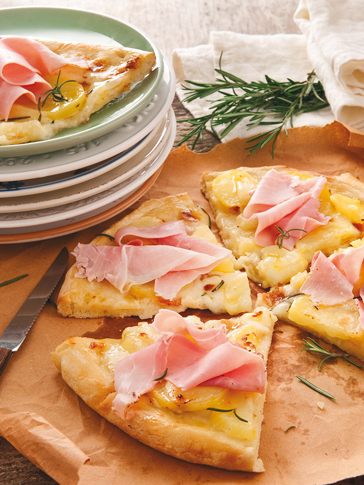 Pizza so zemiakmi a dusenou šunkou