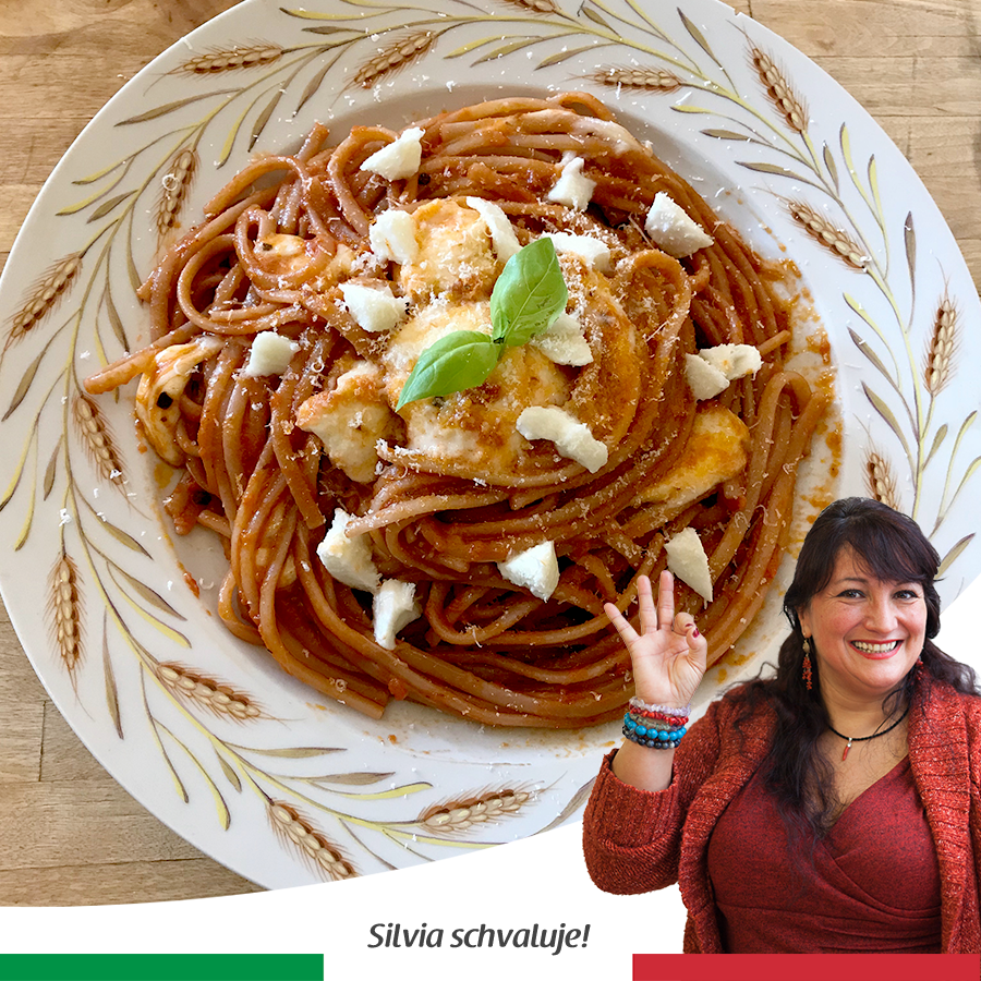 Penne s gorgonzolou, hruškou, ořechy a tymiánem